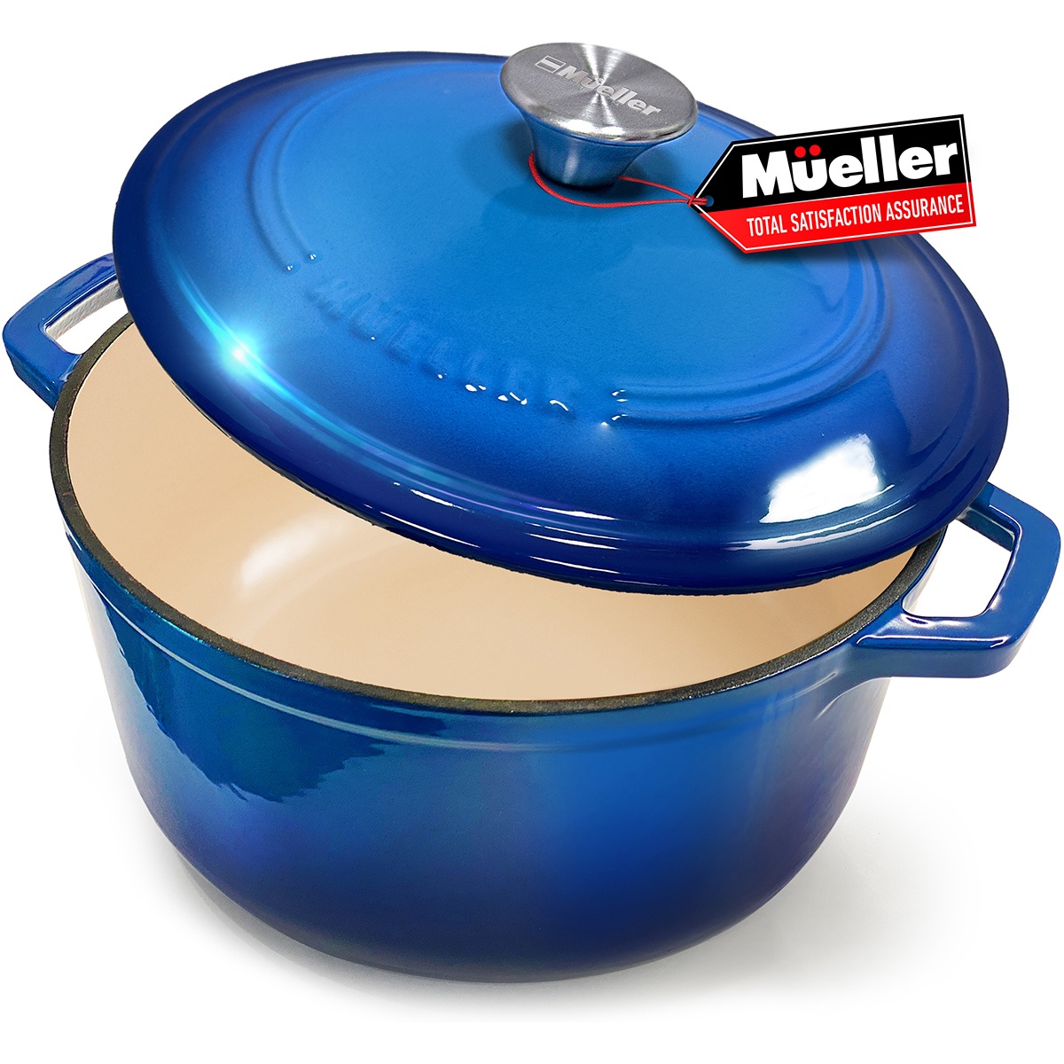 - Heavy-Duty Enameled Cast Iron with High-Gloss Blue Exterior